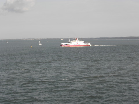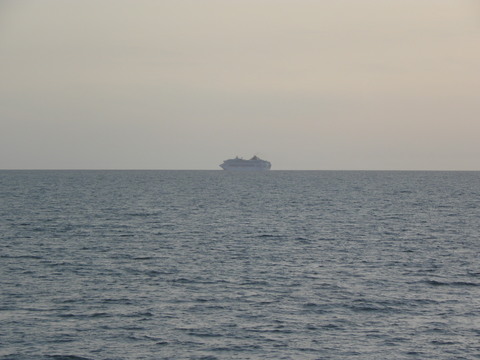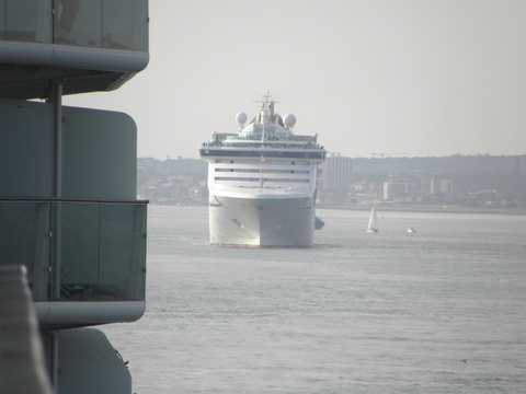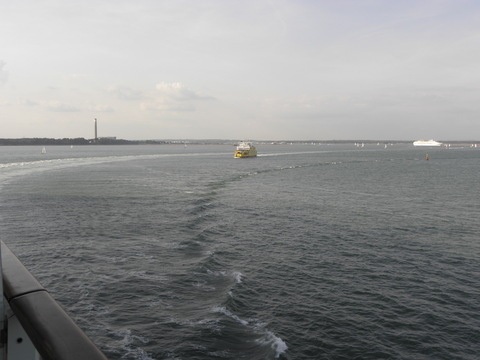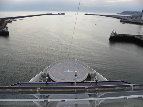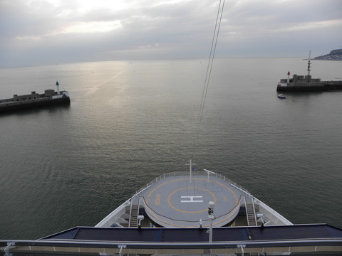 | While we were chugging along at 8-9 knots to Le Havre, Oceana picked up speed after dropping her pilot and headed down to the Med.  I wish we'd been going in the same direction instead of to a port just across the water like a cross-channel ferry.  I wonder if the itinerary planners in Miami realise that and Cherbourg are so close since usually it's the ships from Dover, Harwich, Amsterdam calling at them? One of those ports plus another like Le Verdon would have been much better. |