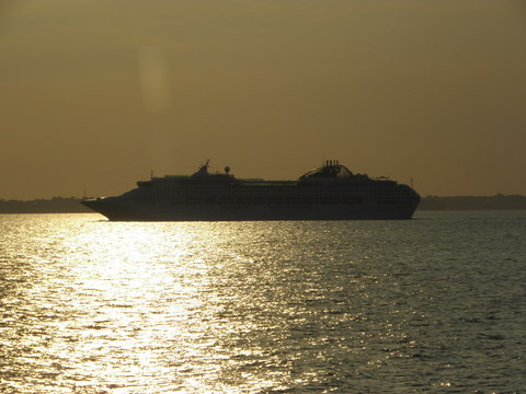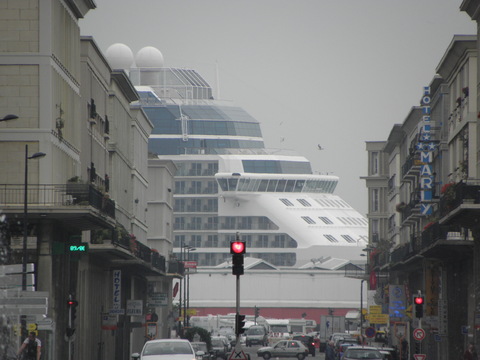 | I went back in twenty minutes later since nothing was happening.  Then we took the sea lane to Cherbourg, a closer hop and jump than Southampton!  Since we were heading south, it would have made more sense to call at somewhere like Brest or Le Verdon.  In fact, there is no need regardless to have consecutive calls at ports so near.  Would be faster to walk!  Does anyone in Miami know anything about the ports and distances from each other on these itineries they plan? |