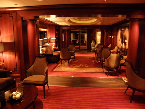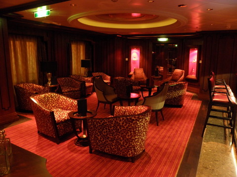 | At the end of June, I'd emailed the Captain's Club to request bookings in the Silk Harvest and Tuscan Grille.  I was told at the beginning of July they can only do one so she put forward the 8pm on the 9th August request for the Silk Harvest.  I was to contact the Maitre d' once onboard to confirm the booking since they were unable to.  Juanita and I couldn't remember the time, only the date, so decided to check only to discover no booking had been made.  I knew I should have printed off the emails but after having no problems with the Ocean Liners on Constellation, had no reason not to trust them.  I rechecked my emails upon returning home and saw the first one had written Solstice, so perhaps she sent the request to the wrong ship.  The second was Equinox.  Since our original time had been taken, we opted for 7pm.  Juanita's excursion would be returning after then which is why we wanted 8pm so she could clean up before dinner.  Then we went over to the Tuscan Grille to book for the 16th when we were in Barcelona.  Again it was a 7pm slot.  Mine that time would be after first sitting started.  We were told we'd expect a card as a reminder.  As we headed back to the main part of the ship, we popped into Michael's Club, the piano bar, which was empty. The piano player was Lloyd Baskin, who spent a lot of time talking to one of the bartenders. It's such a lovely room but stupidly tucked away, unlike on the Millennium Class. If we hadn't been down that way we'd have missed it completely. |