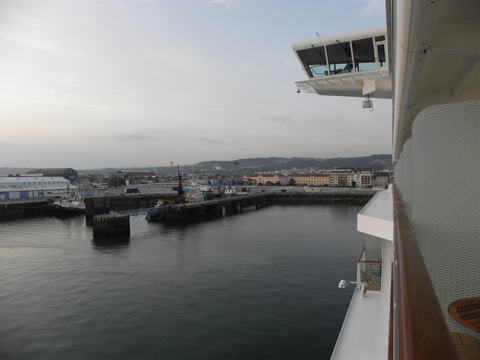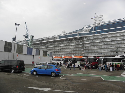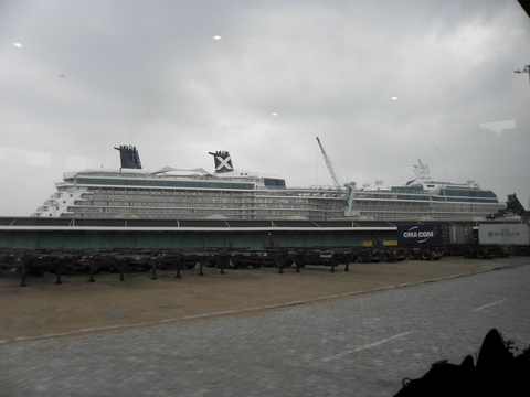 | People were dropped off to do shopping while the rest of us were taken back to the port.  It was such a gloomy old day and since my feet were still not fully recovered from the problems on Jewel I would be glad to get back to the cabin and relax.  It was in interesting terminal, unlike at Le Havre. |