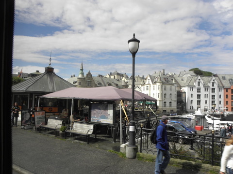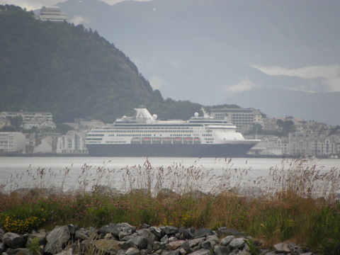 | Then we headed back towards Ålesund and a quick trip around the town with an option to get off or go back to the ship. Since they showed you can get as up close and personal to Ryndam as security allowed, I got off. Marina was the other side of town and my back wouldn't manage the walk. |