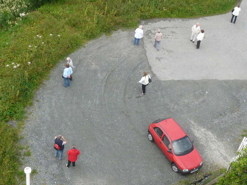 | I was much happier now I'd seen our shippy and she wasn't hidden away too much. Final stop was Alnes lighthouse, in the village of Alnes, where we'd also be having a snack. The waitress or manager or whatever got stroppy with our guide for being early because they have a schedule to keep. Juanita went up to the top. |