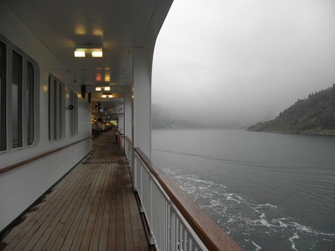 | I don't think any of us will ever be able to listen to Delilah again without being reminded of Cedric wiggling is hips a la Tom Jones but he really got into it. I'm so glad we were put with fun older people and not stuck with the nearly dead. These two, Cedric especially, really made the cruise. Meeting your table companions is always a nervous time as we weigh each other up but sometimes you just click rather than be polite during the meal and we all (that includes Brian and Val) clicked. Mike came and joined us afterwards for a while before heading off to eat or something leaving the rest of us to watch the poncey dancing. There was far too much of this during the cruise - morning, afternoon and night! Many of the nearly dead took it seriously, having brought their poncey dancing shoes! I was waiting for them to collide like dodgems. At least it would have been more interesting. And the snooty nearly dead looked down their pinched noses at younger people who gave it a go but weren't very good. Gareth and Beth decided to leave, which was my cue too since the old farts dancing weren't going to liven it up by even tripping over each other and Juanita followed. As we passed Champions, Gavin saw us and said, "Where were you, girls?" so we pointed towards Carmen's. I went to the photo shop and an Italian lady was moaning about EVERYTHING to Darren, although I agreed with her about the Arctic Circle one. Contrary to what Darren had told us about them not knowing they would do them, P&O is hardly a stranger to Iceland so they did. Also, if they'd said the soft-focus was for that instead of this looking ten years younger crap, many people would have been more likely to have it taken. But why not use another photo if someone didn't have one? The whole thing was a joke. I told the girl about Darren showing his builder's bum while waiting for the geyser and she enjoyed embarrassing him after that. I bumped into a nearly dead as I turned to leave and the old bag blamed me! The queue was to my LEFT to prevent that happening yet she stood to my RIGHT. It's never their fault, is it(?) Stupid bitch. And they wonder why they gain no respect. Back to the cabin since it was another early start, since we were arriving in the cul-de-sac that is Geiranger for 8am. Aurora was chomping at the bit an hour before we were due to sail and it was still chucking it down. In the end we went about half an hour early. |