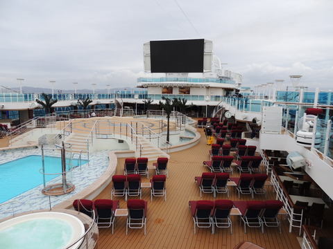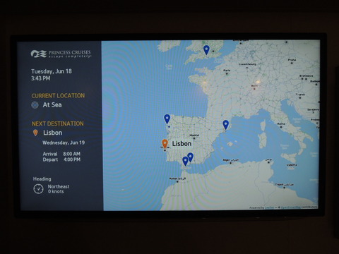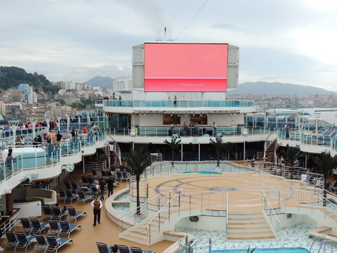 | I joined Dot and Hazel for the quiz in Club 6, which is a lovely room wasted as a nightclub. The Elite two hour thing was also held here although I didn't go. It's like Royal Caribbean and Celebrity's daily one with canapes but unlike their free drinks, you had to pay for these, albeit at reduced prices. We and the American lady who sat with us, got a reasonable 13/20 then I went on deck to try and find a good spot away from the deafening din called sailaway music and also where to get some reasonably decent pictures from. I saw Geoff, a lovely old bloke who I'd last met on Oriana when he was at the table with Jeff Newsway during our Zeebrugge sailaway party. We had a natter then he left. Due to late passengers, we ended up going nearly twenty minutes later than scheduled. Despite the rubbish location for photos, it was much quieter up there. A shame the Retreat was the centre of attention in any forward photos. The Love Boat horn was played just once. I chatted to Matt Sudders as we were leaving then stayed out a while longer, heading in just as they began to practice the fountain again. Before dinner in the Vista Lounge were Arrival, an Abba tribute band. A Kiwi contingent were along the front row both sides and I was next to a 70 year old travel agent who remembered Canberra's first arrival into Auckland during her maiden voyage in 1961 and used to deliver mail to the old P&O and Orient Line ships in the late 1950s. He was so fascinating to talk to it was a shame the show started really! They were good but didn't really sound like the real thing. Dinner and unsurprisingly the Mexican ladies had moved to another table where they spent most of the night looking at their phones rather than talking to each other. I ordered the chicken for dinner and it was nice tasting but again, like the first night and curry in the Wheelhouse, contained pink bits. I went to get my boarding photo and took the free album or scrapbook voucher, only to be told everyone was getting one. Was this all we would be getting from Princess for the maiden voyage, a free album and crappy photo of the ship to go in it? Back to the cabin afterwards so I could be up early for our Lisbon arrival but around 1.30am, I checked the AIS on my phone and saw Carnival Legend heading the opposite direction. On deck, they were practicing the fountain again and it looked good in the dark. Then back to bed. |
