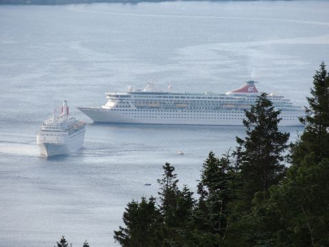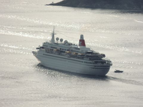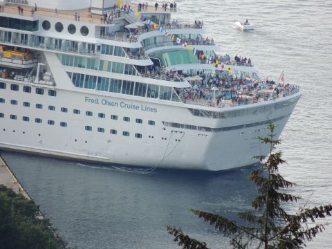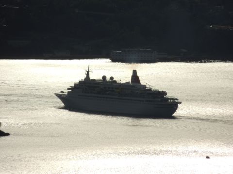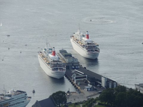 | And so it was all over but what an incredible day! The inclusion of passengers and crew for activities was a good one and many passengers I spoke to from various ships were really enjoying what had been laid on for them. From a purely spectator point of view it was the best fleet gathering I've seen, and that includes P&O's Grand Event as well as 6 out of 9 Cunard Three Queens. Fred. Olsen didn't hype this to death and their plans weren't the usual arrive, fireworks, off so for some passengers onboard it came as a pleasant surprise and I'm sure it didn't disappoint. I for one am delighted I went to witness maritime history in their 'historic homeland'. Everyone at Fred. Olsen, ashore and on the ships, can be very proud of this successful achievement. |