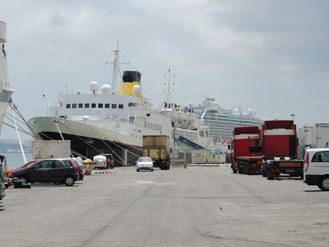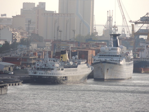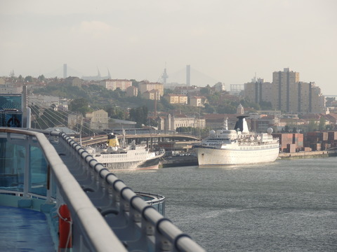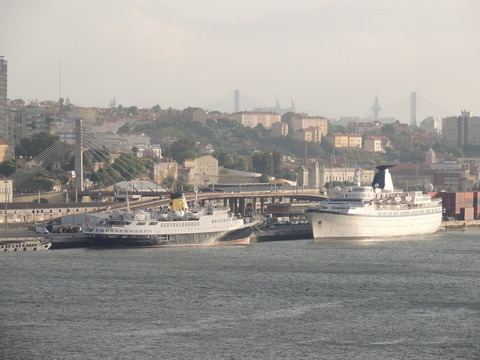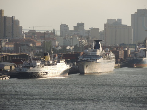 Three beauties were in Lisbon when I arrived on Royal Princess on the 19th June 2013. I knew the old Funchal had been laid up for a couple of years after Classic International Cruises ran out of money during her refit but hadn't been able to find her. I had done a boat tour while on Independence of the Seas in November 2011 but hadn't seen her. So imagine my surprise when I saw two cuties a little bit behind us. In the red corner, the adorable little Porto, freshly painted with the livery of Portuscalecruises. She began life in 1965 as the 5,888grt Istra for Jadrolinija in Yugoslavia, doing various cruises, where she remained until chartered by Neckermann in 1991, becoming Astra then Astra I in 1997. Classic International Cruises purchased her two years later, renaming her Arion where she remained until they went bust in 2012. She was arrested in Montenegro in September that year over unpaid wages and fuel costs. In early 2013, she as well as Athena, Funchal and Princess Danae were bought by Rui Alegre. She arrived in Lisbon in March 2013 and was the first to undergo drydocking for her new role and was renamed Porto. She has been luckier than her sister, Dalmacija, who was sold to Pakistani breakers in 2009.