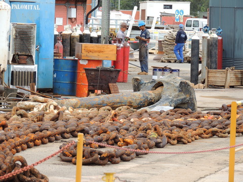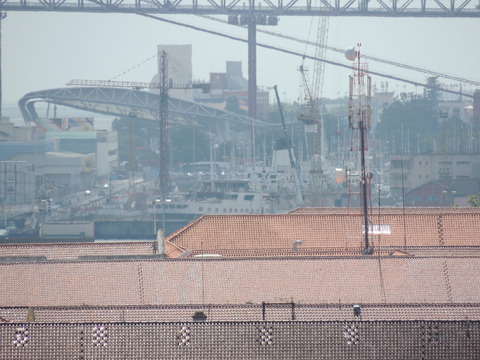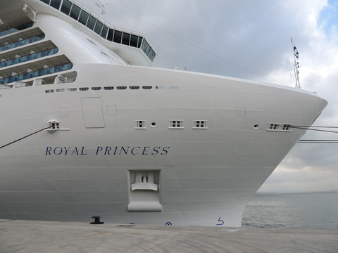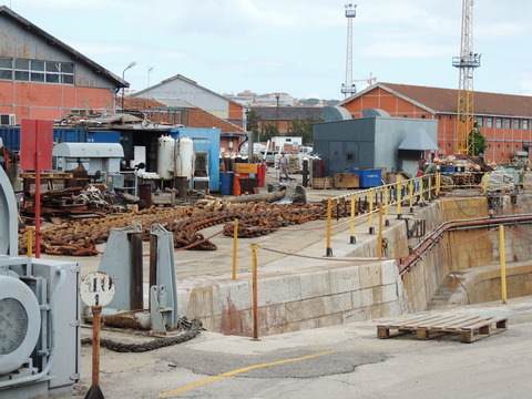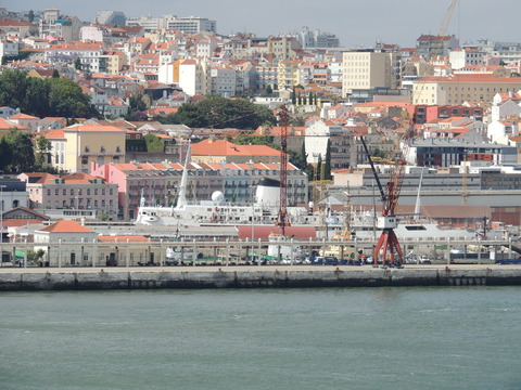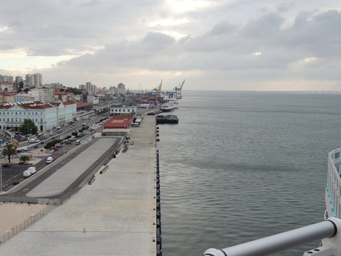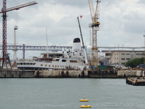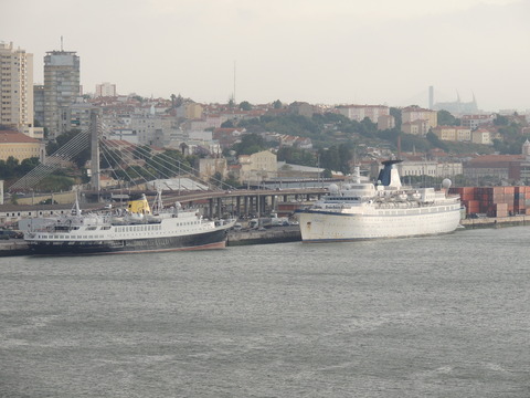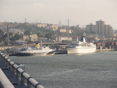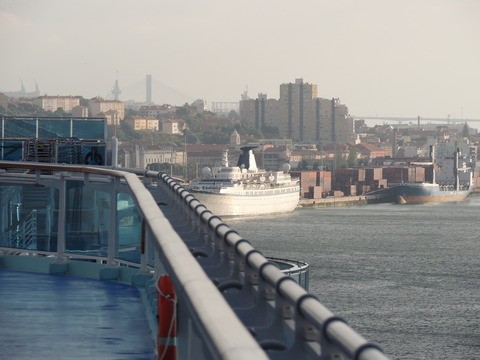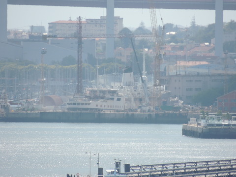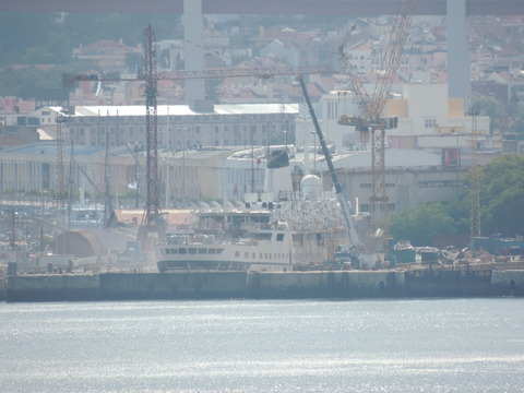 This is the ship I was beginning to think I was destined never to see. I missed her in Harwich back in May 2009 thanks to the crappy port schedule not giving times so she left after dropping passengers while I was still at the hotel before my own cruise on Vision of the Seas. Then each time I had been to Lisbon during her lay up I had no idea where she was. Thanks to Vitor Francisco and Luis Miguel Correia, I was about to find my personal Excalibur! When I arrived, I had no idea she was in the dry dock until Luis asked if I'd seen her on Facebook. Later, Matt Sudders, who I knew from the Ocean Liner Society, pointed her out to me.