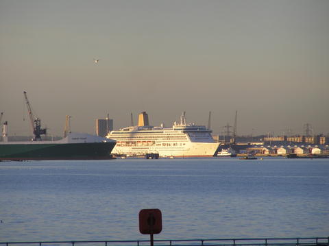 | Then we headed for the marina and there were already quite a few people waiting, although several then 'went for a walk'. It started to build up with spectators complete with hot drinks and food. Aurora was also in, having arrived back from a three-night cruise on the 10th and going nowhere until the 14th. |