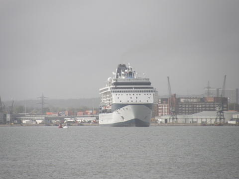 | A 'will we/won't we' afternoon on the 29th April 2008. Summit had arrived back in Southampton from refit in Hamburg bearing her new name of Celebrity Summit, docking for 4.15am which was a little too early to see her. We'd hoped for around 10am as Milliennium had been a year before. She was due to sail to Barcelona for a summer of cruises at 5pm then for some reason it was put back an hour. The weather was foul. Rain and strong gusts. So we got to the bus stop then changed our minds just before the bus came. But by 5.30pm the weather eased so we decided to go after all to get the ship's debut sailing with her current moniker as they hadn't added Celebrity to Millennium during her refit. They did with Constellation a few weeks later but she returned to Dover so we didn't see it. The buses had now reverted to one an hour which was no help so we ordered a taxi. When we arrived at the marina it was spitting a bit and the wind was a bit strong behind us. It was completely empty apart from us and the odd walker and car. No one on the front anyway unless they were the other side of the lock. Her ropes were off by 6pm and she slowly moved away from City Terminal. Disappointingly she didn't blast. |